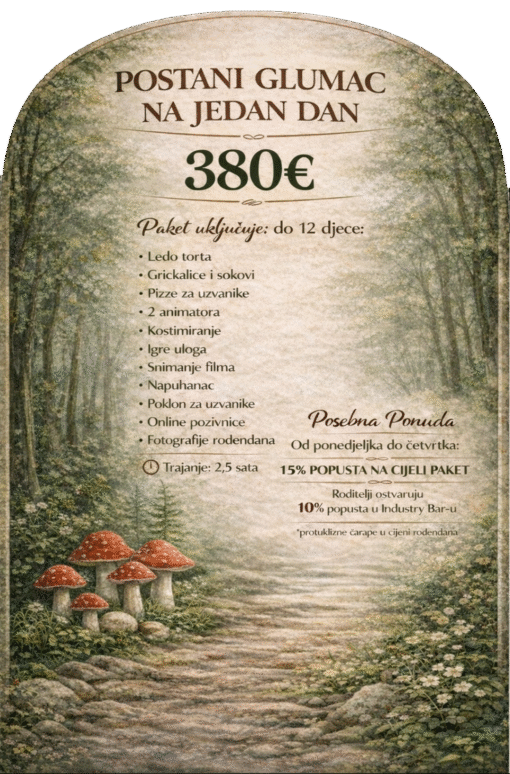 Od ponedjeljka do četvrtka besplatno oslikavanje lica ili pinjata. Cijena pinjate ili oslikavanja lica odbija se od cijene rođendanske zabave.